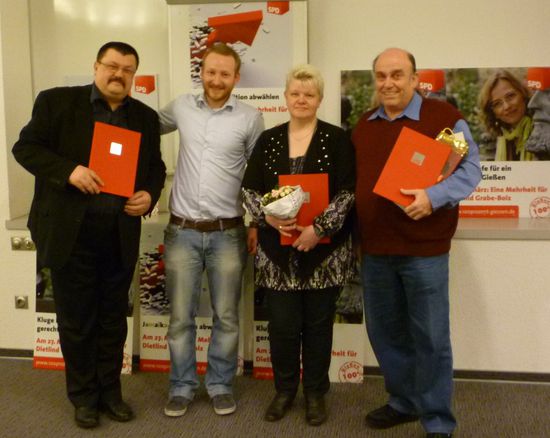Auf der Jahreshauptversammlung der SPD Gießen-Mitte wurden Marion Dietrich, Hans Dietrich und Otto Dieterich für ihre langjährige Parteimitgliedschaft geehrt. Marion und Hans Dietrich gehören beide seit 30 Jahren der SPD an. „Ohne die Familie Dietrich ist der Ortsverein Gießen-Mitte heute gar nicht denkbar. Sowohl Marion und Hans als auch ihr Sohn Max, der auf der Jahreshauptversammlung als Kassierer des Ortsvereins bestätigt wurde, sind seit Jahren Herz und Seele der Innenstadt-SPD“ so der Ortsvereinsvorsitzende Felix Diehl über die Familien-Dynastie.